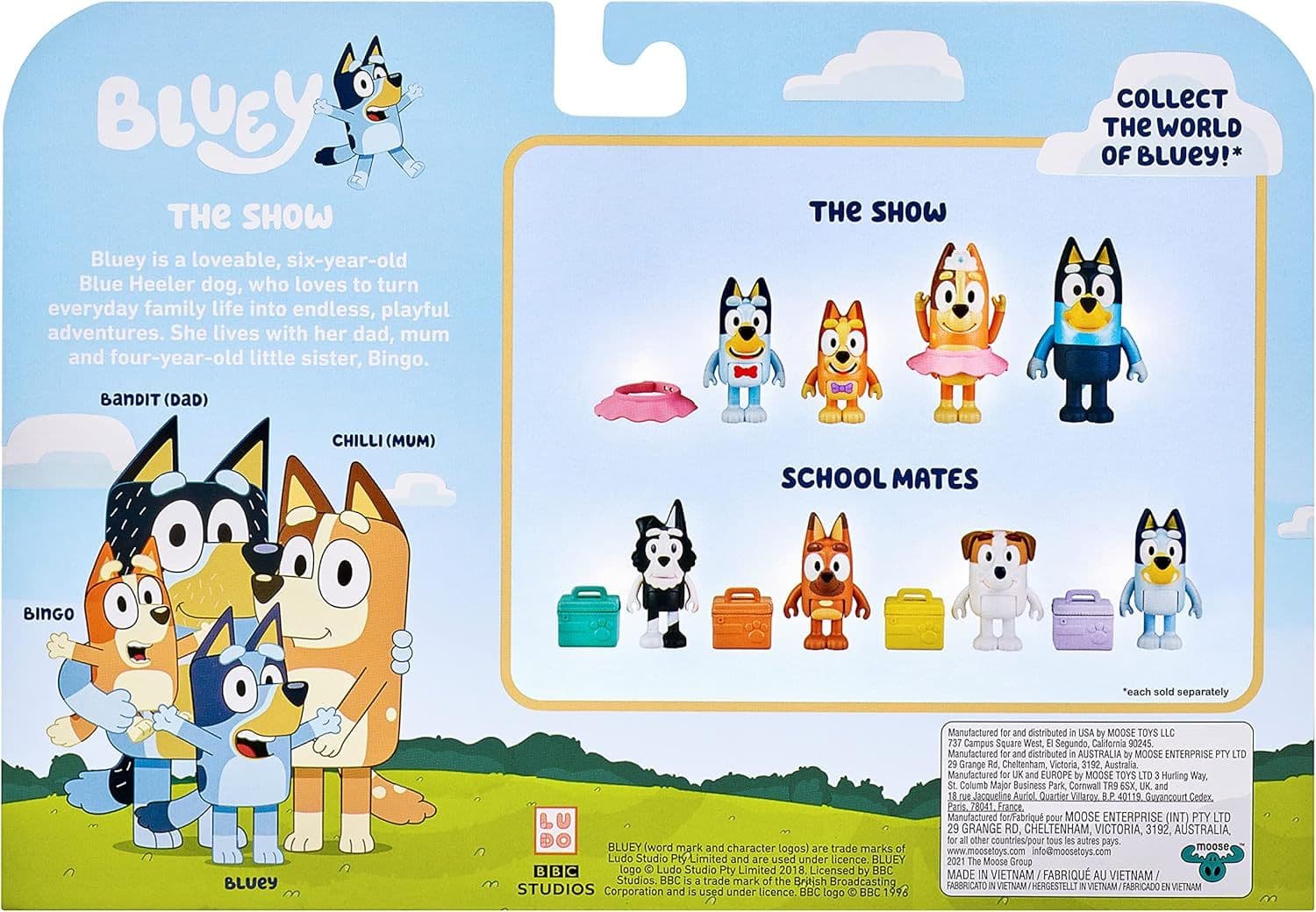 Bluey Home / Brands / Bluey / Bluey "The Show" 4-Pack 2.5-3 inch Official Bluey, Bingo, Chilli (Mum) and Bandit (Dad) 4 Pack Bluey "The Show" 4-Pack 2.5-3 inch Official Bluey, Bingo, Chilli (Mum) and Bandit (Dad) 4 Pack Bluey "The Show" 4-Pack 2.5-3 inch Official Bluey, Bingo, Chilli (Mum) and Bandit (Dad) 4 Pack £9.99 RRP: £11.99 Stock Status: Sold Out You Will Earn 9 points with this purchase Sorry, this item is out of stock Description Introducing the ultimate addition to any Bluey fan's collection - the Bluey "The Show" 4-Pack! This pack includes four of your favorite characters: Bluey, Bingo, Chilli (aka Mum), and Bandit (aka Dad). And the best part? They're all between 2.5 to 3 inches tall, making them the perfect size for playtime adventures. Officially licensed and full of personality, these figures are sure to bring a smile to your face. Bluey, the beloved blue heeler, is always ready for a game or a cuddle. Her little sister, Bingo, is full of energy and always up for a laugh. And let's not forget about their parents - Chilli (aka Mum) and Bandit (aka Dad) bring their own unique brand of humor to the table. Reviews Customer reviews No reviews left yet Write a review Sort byMost RecentTop Rated No reviews have been left for this product, be the first to leave a review Attributes Age Group: 3 Years Issue Date: 2022 Colour: Multicoloured EAN: 630996173404 Brand: Bluey Condition: New Product Code: 17340
