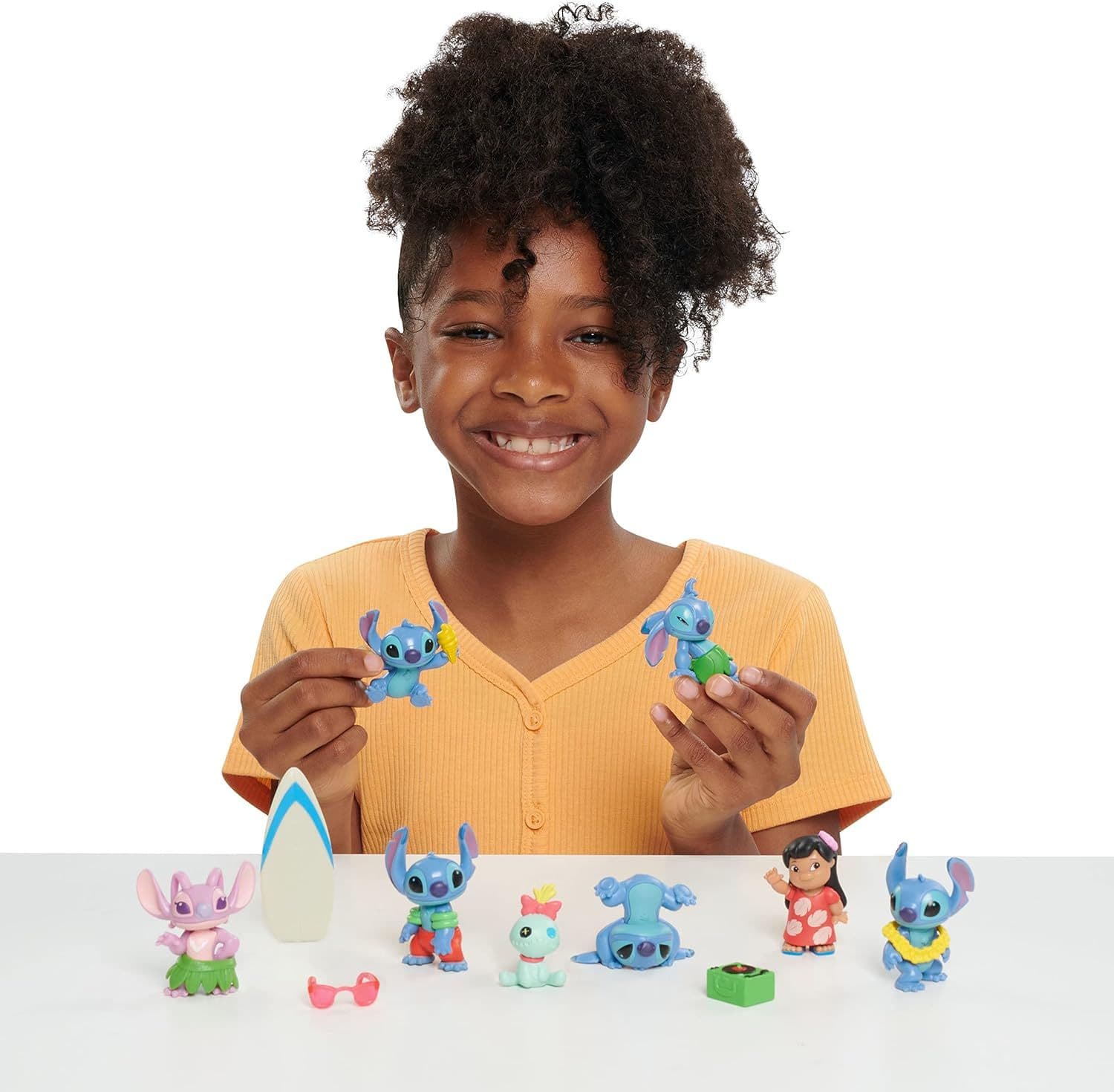 Introducing the ultimate Disney's 'Lilo & Stitch' collector's pack! This must-have set includes 13 pieces, featuring 8 intricately designed minifigures and 5 adorable accessories. Standing at approximately 7 cm tall, our figures capture every detail of your favourite characters, from Stitch in various poses to Lilo, Scrump, Angel, and more. Each piece comes in charming window box packaging, perfect for display or gifting. Don't miss out on adding these beloved characters to your collection. Order now and experience the magic of Disney's 'Lilo & Stitch' in your own home!