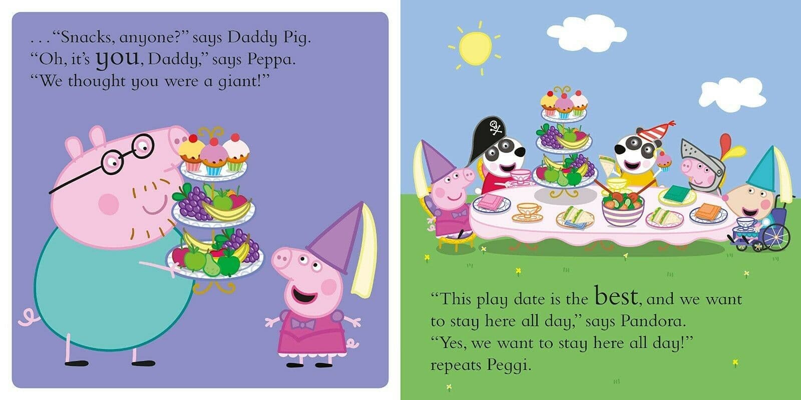 Children's Books Home / Brands / Children's Books / Peppa Pig Peppa's Play Date Hardback Book Peppa Pig Peppa's Play Date Hardback Book Peppa Pig Peppa's Play Date Hardback Book £4.99 Stock Status: In Stock You Will Earn 4 points with this purchase Description Little Peppa is excited because Mandy Mouse and the Panda Twins are coming for a playdate! They've got lots of fun games and activities to keep everyone entertained, including Peppa, Mandy, Peggi and Pandora. It's a great day for Peppa and friends thanks to Daddy Pig and mummy Pig! Mandy Mouse, Peggi, and Pandora Panda make their first appearance in this story book. Reviews Customer reviews No reviews left yet Write a review Sort byMost RecentTop Rated No reviews have been left for this product, be the first to leave a review Attributes Age Group: 3 Years Issue Date: 2020 EAN: 9780241412237 Brand: Penguin Books